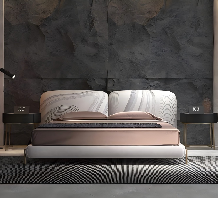 La prigione a strato superiore importato italiano selezionato, utilizzando la tecnologia di stampa smerigliata, presenta una delicata consistenza opaca, calda e adatta alla pelle, resistente ai graffi e resistente all'usura e facile da cura. Le linee minimaliste con design di trapunte tridimensionali interpretano l'estetica di lusso a basso tasto del lusso leggero italiano. L'angolo di inclinazione dorato a 45 ° della testiera è ergonomico, quindi non ti sentirai stanco anche se ti appoggi per molto tempo.