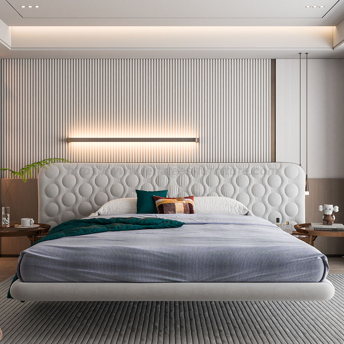 3.Il Lenatoes Furniture® Modern Design Bed Head e la fine del letto utilizzano una tecnica di pulsante di pull, promosso il temperamento integrale, lasciando che il letto originariamente straordinario diventasse un occhio più luminoso.